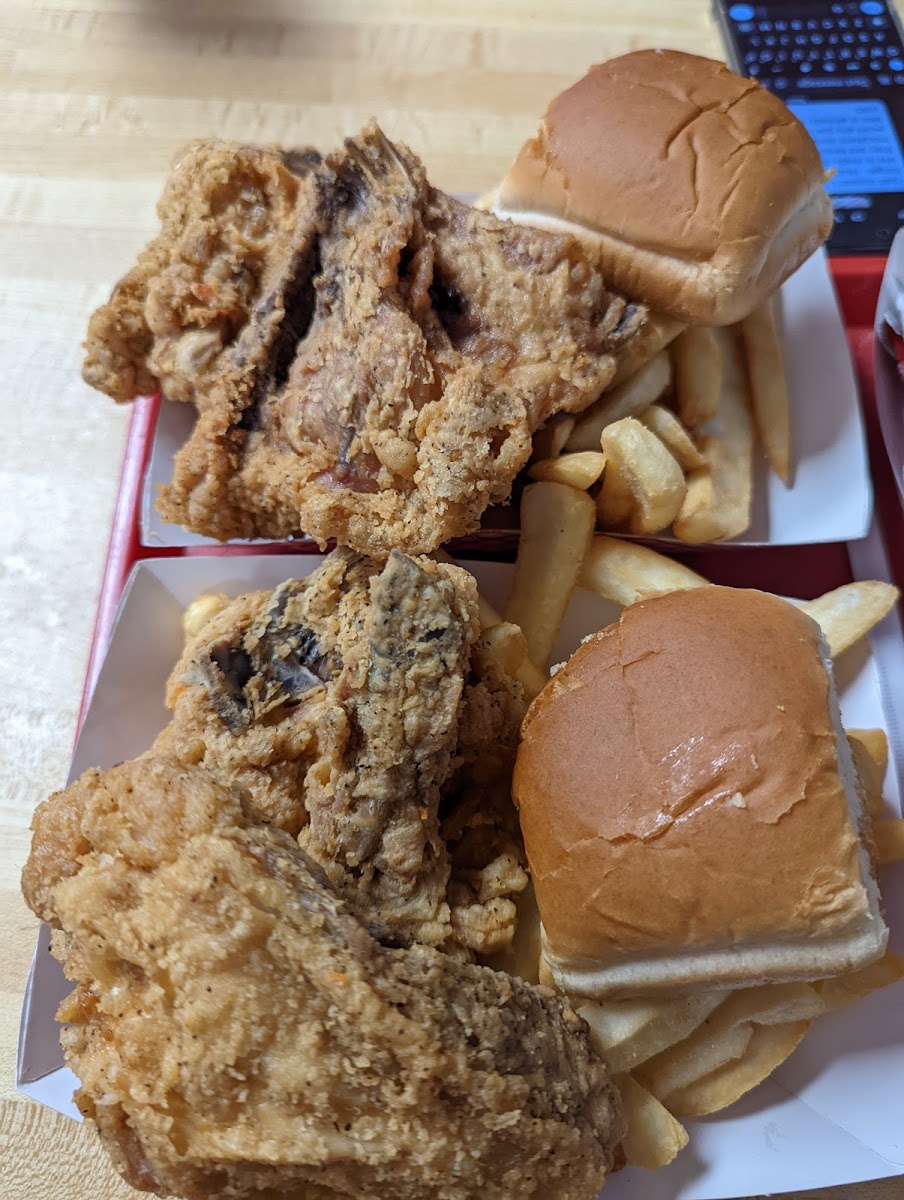 The menu is the kind that makes decisions hard because everything sounds familiar in a good way. Fried chicken is clearly the star, cooked to order and seasoned so the flavor hits before the crunch does. The process is simple but effective: fresh chicken, a well-balanced breading, and oil kept at the right temperature so nothing comes out greasy. According to food science research published by the Institute of Food Technologists, maintaining stable frying temperatures significantly reduces oil absorption, and you can taste the difference here. Pair the chicken with fries or coleslaw, and you’ve got a meal that explains why diners like this stay busy year after year.